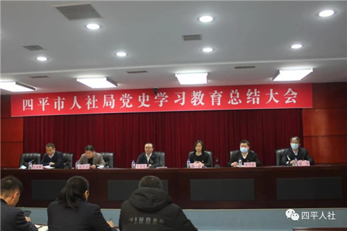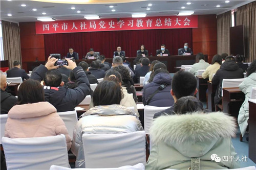 1月19日,四平市人社局在市政府5楼会议室召开党史学习教育总结会议。会议由市人社局党组成员、二级调研员陈洪彦主持,市人社局党组成员、副局长纪来顺传达了习近平总书记在党史学习教育总结会议上的重要指示精神;省、市委党史学习教育总结会议精神;局党组书记、局长于奉春代表局党组作了总结。市委党史学习教育第八巡回指导组组长、市教育局副局长韩晶等同志到会指导,市人社局二级调研员牛雪征、副局长刘力,局属事业单位班子成员和全局党员参加会议。